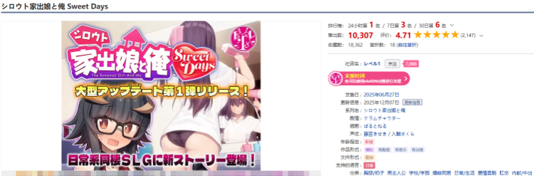 【同居养成SLG】「シロウト家出娘と俺 Sweet Days Ver1.04」DLC篇[生肉]