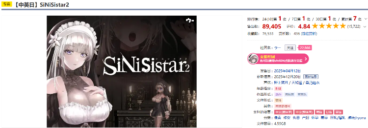 是著名大作SiNiSistar的第2代作品,依然是哥特少女勇闖惡魔城主題。