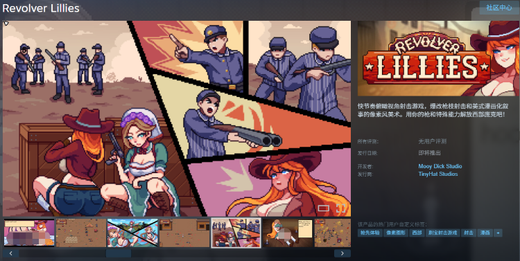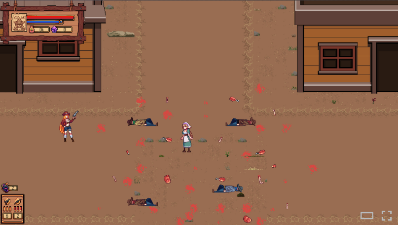快节奏俯瞰视角射击游戏,爆改枪枝射击和美式漫画化叙事的像素风美术。用你的枪和特殊能力解放西部庞克吧!