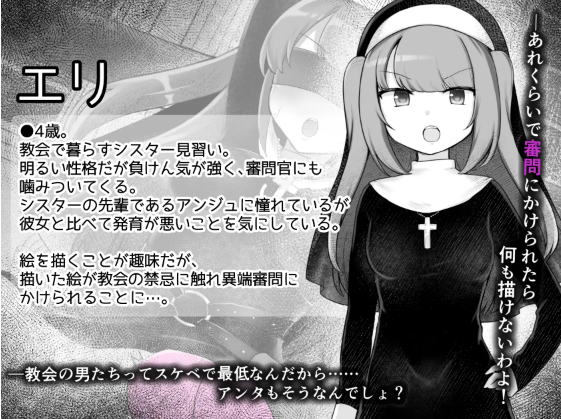 你作为侍奉教会的年轻审问官,肩负着审判两位美丽修女的重任——她们是触碰了‘禁忌’的修女。