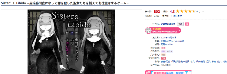 【日式SLG】Sister’s Libido ~異端審問官になって罪を犯した聖女たちを捕えてお仕置きするゲーム~Ver1.01 AI汉化版