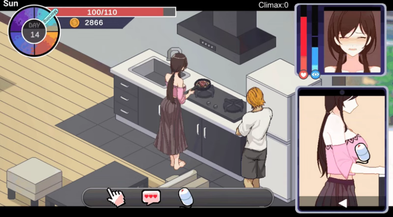 在90天内让女主角堕落的模拟游戏。游戏每天分为早上、下午、晚上、午夜四个时段,每个时段可选择不同行动,如打工赚钱、与女主角互动、购买道具等。包含多种小游戏(如猜拳、送货、射击等),来推进亲密度与剧情进展。